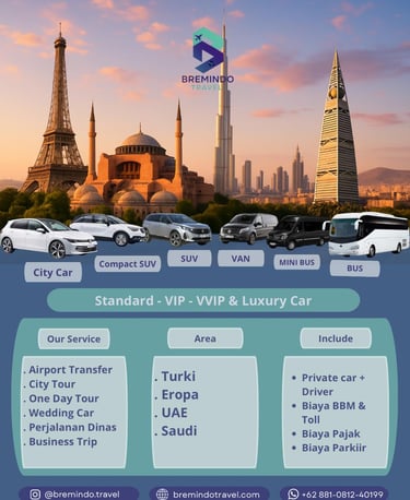 ๐ Perjalanan Luar Negeri Mau Lebih Mudah, Nyaman & Berkelas? Bremindo Travel siap nemenin kamu dengan layanan Private Car Premium di: